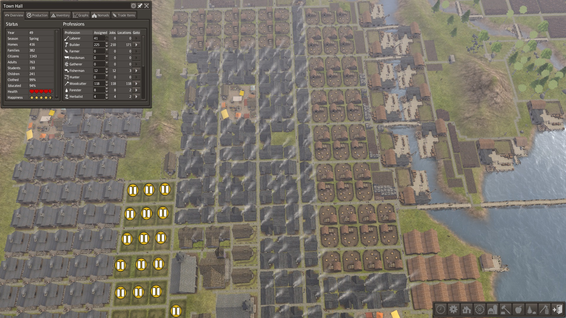 • Жители являются вашими основным ресурсом. Они рождаются, растут, выполняют работу, заводят потомство, и рано или поздно - умирают. Поддержание счастья, здоровья и запасов провизии является необходимым условием для роста вашего городка. Просто строить новые дома недостаточно - в городке должно быть достаточно людей, чтобы в них жить;