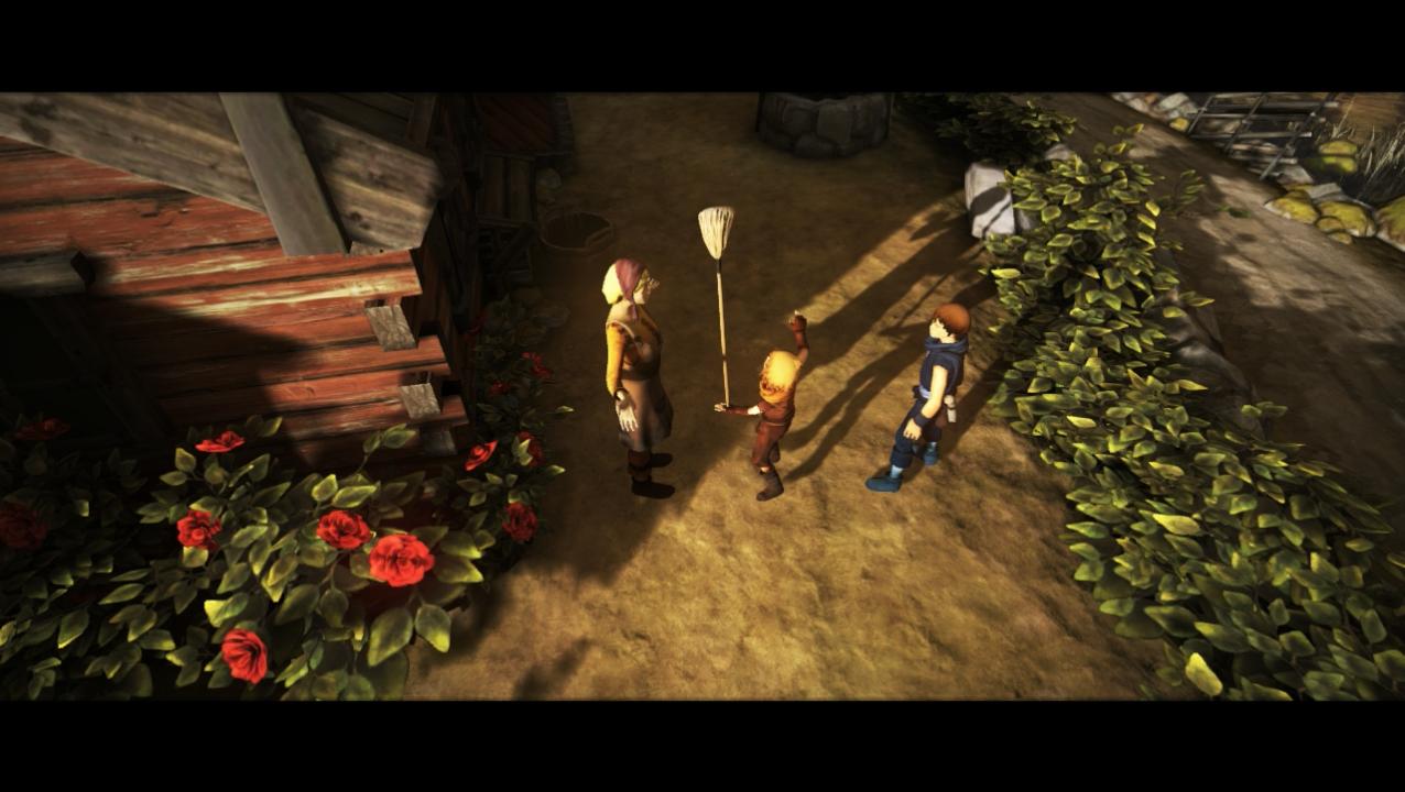 Похоронив брата, возвращаемся в родную деревню. Теперь функции старшего брата может выполнять и младший. Плывем, удерживая нажатой кнопку действия старшего брата. То же самое касается большого рычага и ранее недоступной для одного брата возвышенности. Доставив зелье отцу, на следующее утро поднимаемся к нему и смотрим финальный ролик.