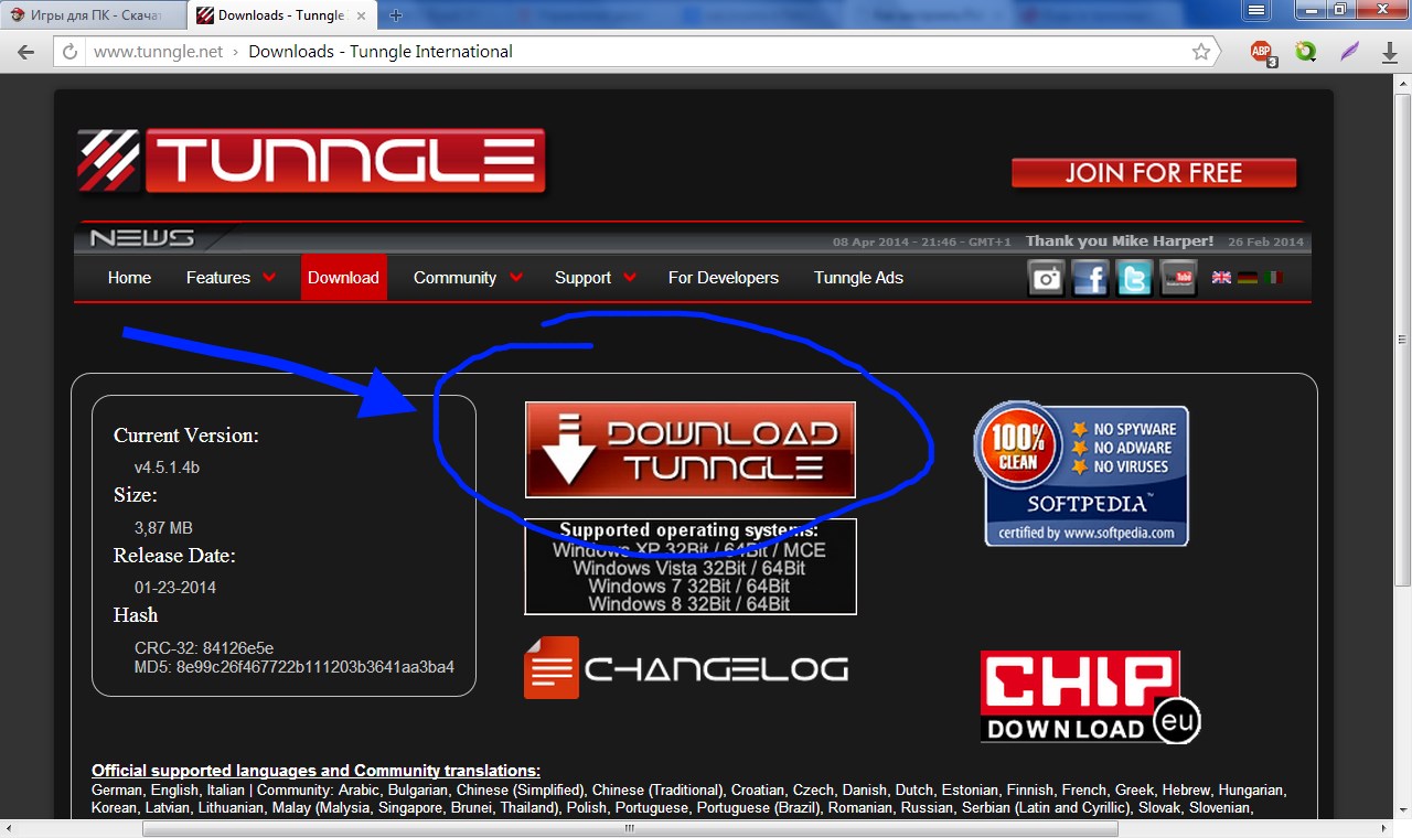 3. Загружаем и установлением Tunngle программу: