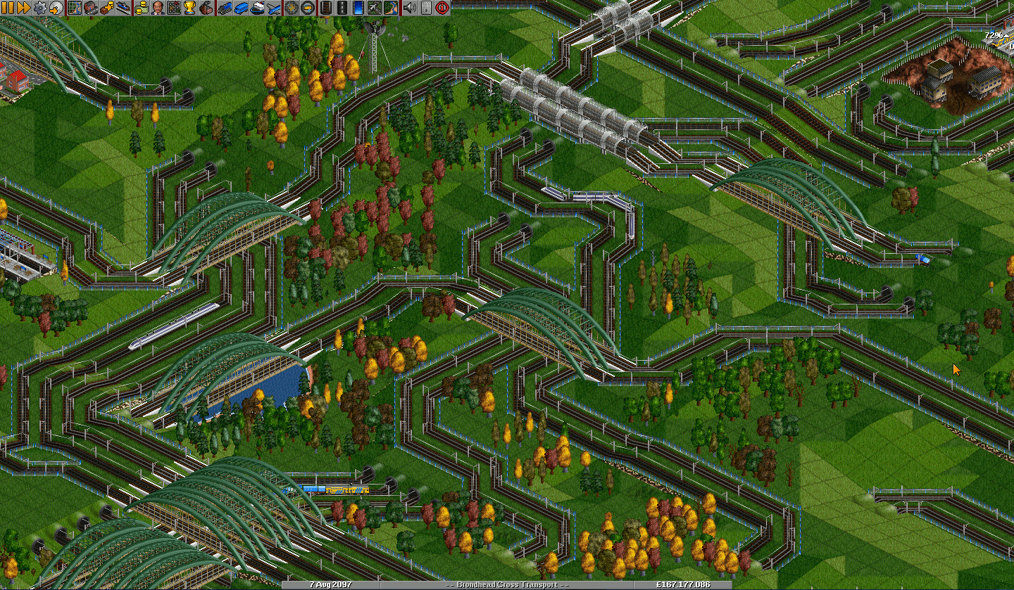 OpenTTD - это полный клон Transport Tycoon Deluxe с открытыми исходными кодами. В этом Tycoon'е реализованы некоторые довольно удобные возможности, например, строительство диагональных путей в два клика, изменение всех опций настройки (аналогичных TTD Patch) прямо из меню, работа в оконном режиме и др.