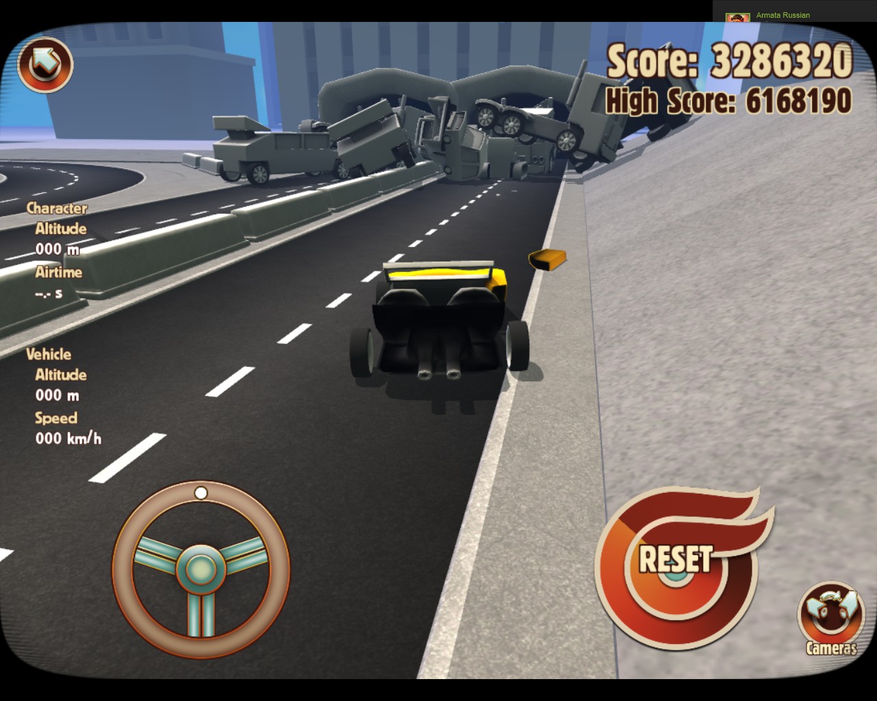 без сюжета, но с забавным игровым процессом. Суть заключается в следующем - садите человекоподобного манекена в одно из понравившихся автотранспортных средств, и решаете в какие препятствия или авто он должен врезаться. Довольно большой автопарк и прочие транспортные средства, возможность установки разных преград и трамплинов, наделение "счастливчика" разнообразными характеристиками и изменение его внешнего вида, делает этот симулятор действительно увлекательным.