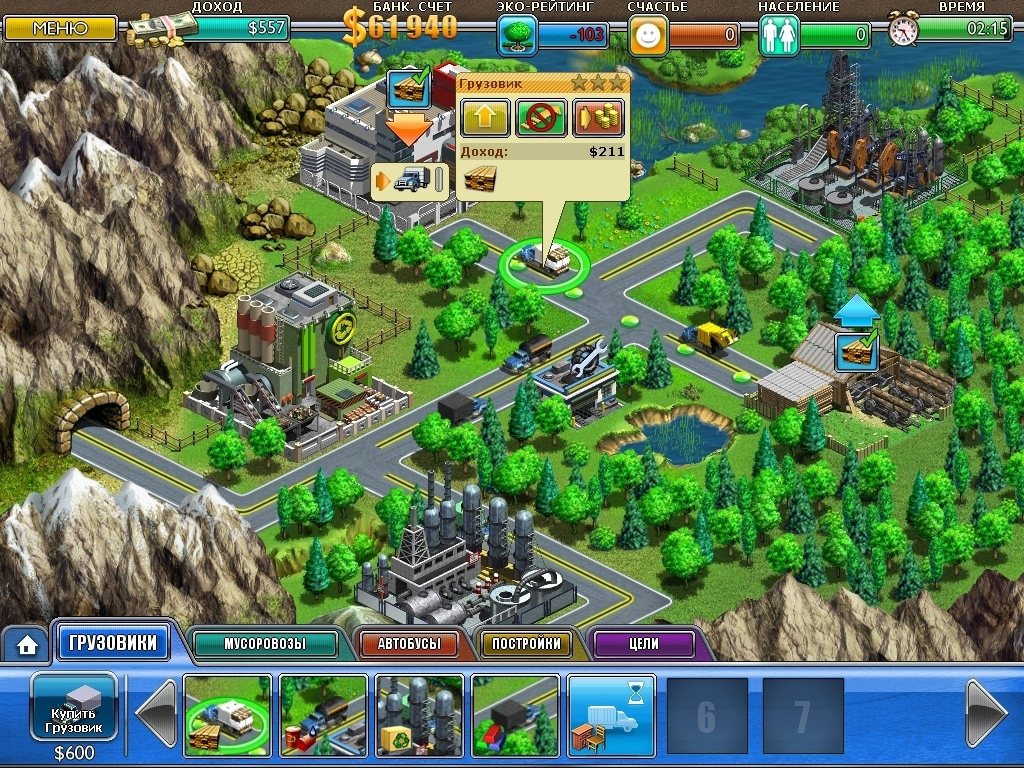 Виртуальный город - в увлекательном симуляторе «Виртуальный Город» перед вами поставлена серьезная задача – вам нужно создать в небольшом городе транспортную сеть, связывающую различные промышленные объекты. Для этого вам нужно приобрести грузовик, задать ему маршрут таким образом, что бы он перевозил продукцию из одного места в другое. Постепенно развивая компанию, вам станут доступны новые постройки и новые виды транспорта.
