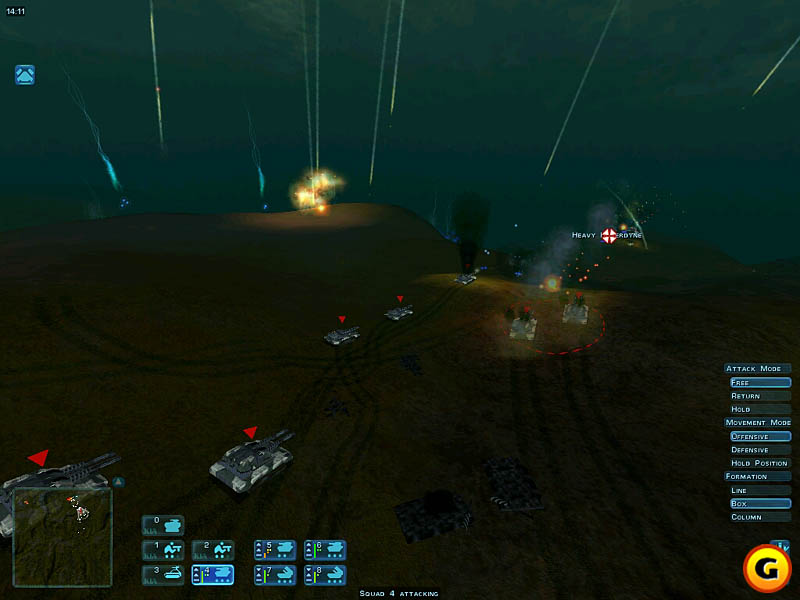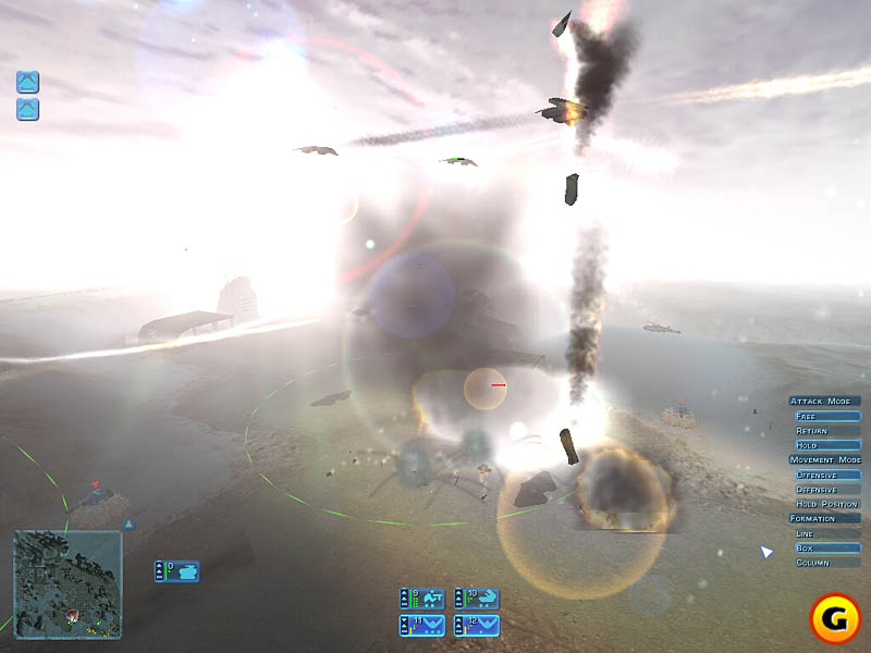 Компенсируется это неплохим разнообразием миссий (строительство отсутствует, войска высаживаются в заданных точках, и игрок уже сам волен решать, как выполнять поставленные задачи, которых может быть несколько), симпатичными брифинги (а-ля Starcraft), разнообразные наземные и воздушные юниты (которые набираются опыта и становятся сильнее от миссии к миссии) и широкие возможности их модернизации, а также разнообразие уровней сложности игры, на каждом из которых своя тактика, концепция игры. То, что получалось на одном, не выйдет на другом.