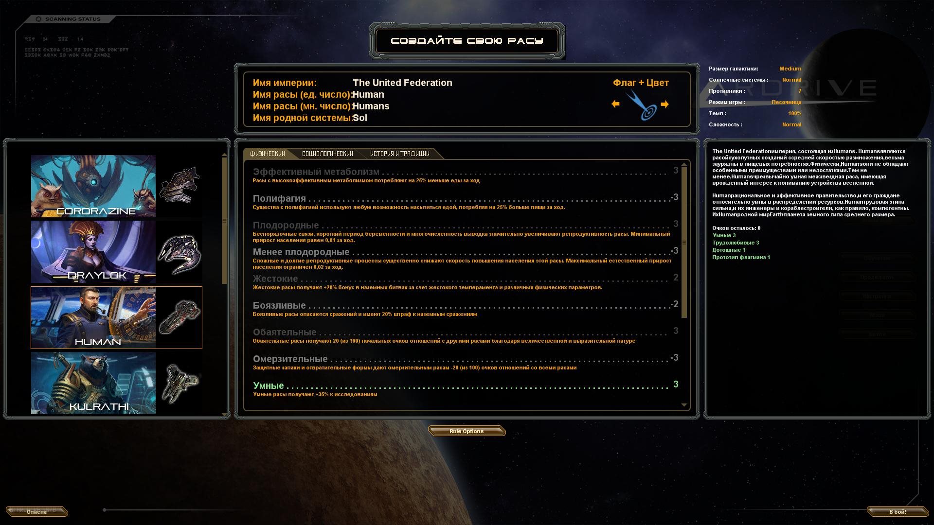 • Выберите одну из 8 инопланетных рас или сотворите собственную