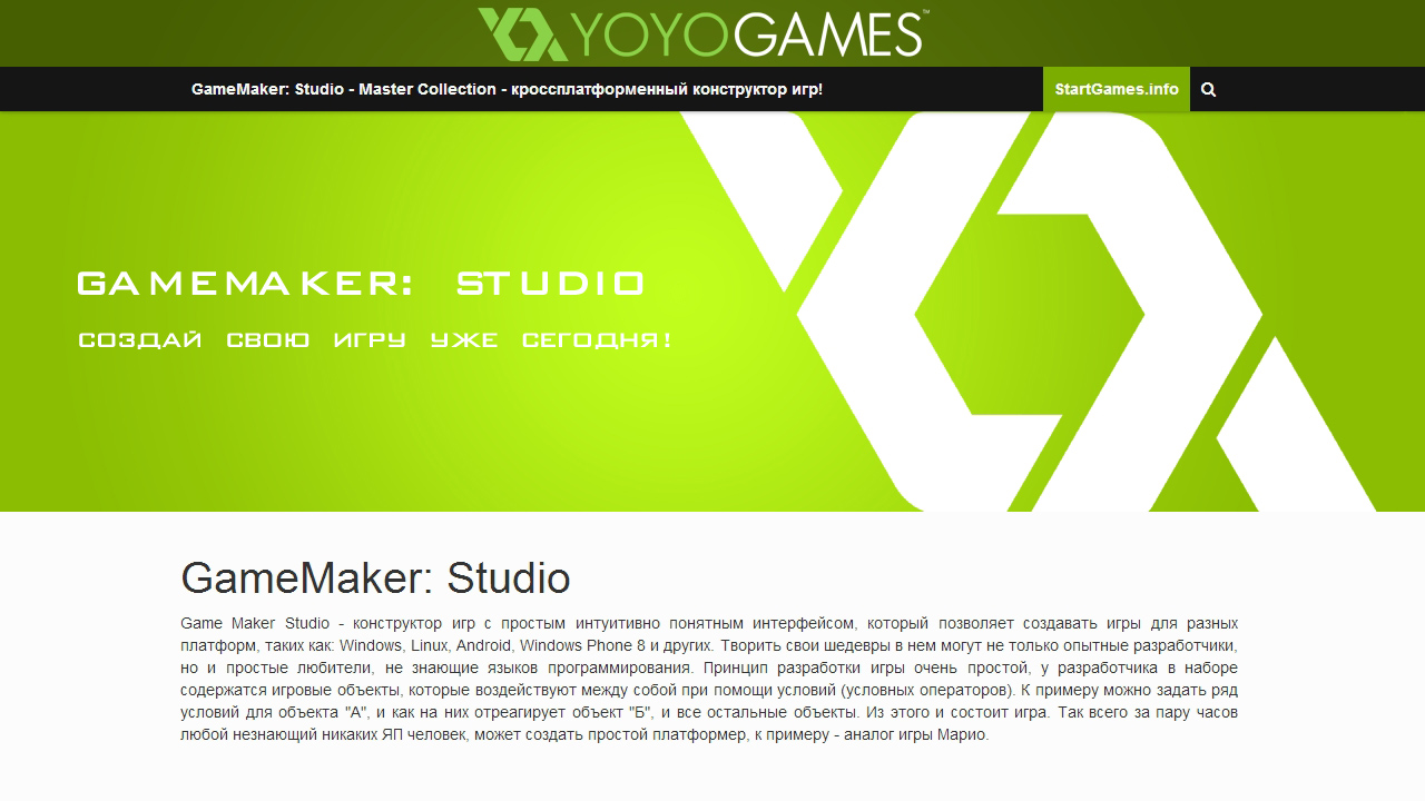 Game Maker Studio - конструктор игр с простым интуитивно понятным интерфейсом, который позволяет создавать игры для разных платформ, таких как: Windows, Linux, Android, Windows Phone 8 и других. Творить свои шедевры в нем могут не только опытные разработчики, но и простые любители, не знающие языков программирования...